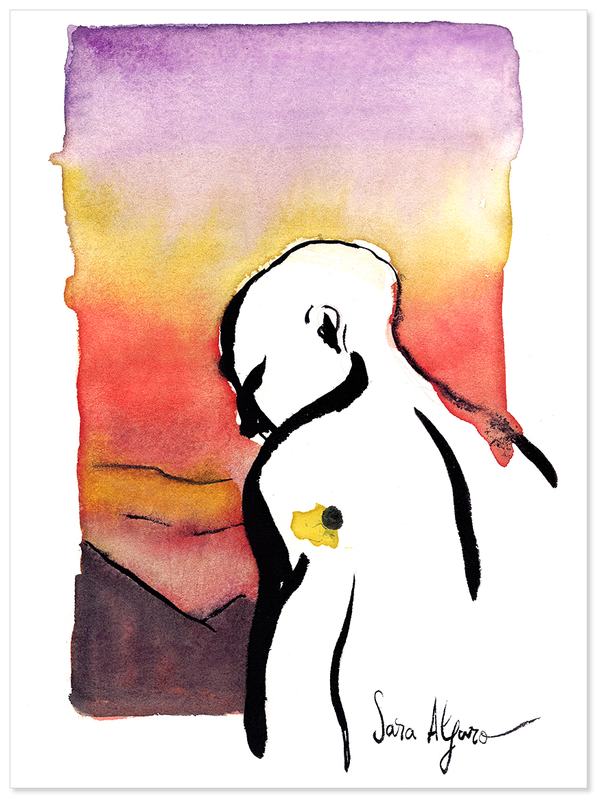 La obra original está realizada en tinta y acuarela sobre cuaderno.